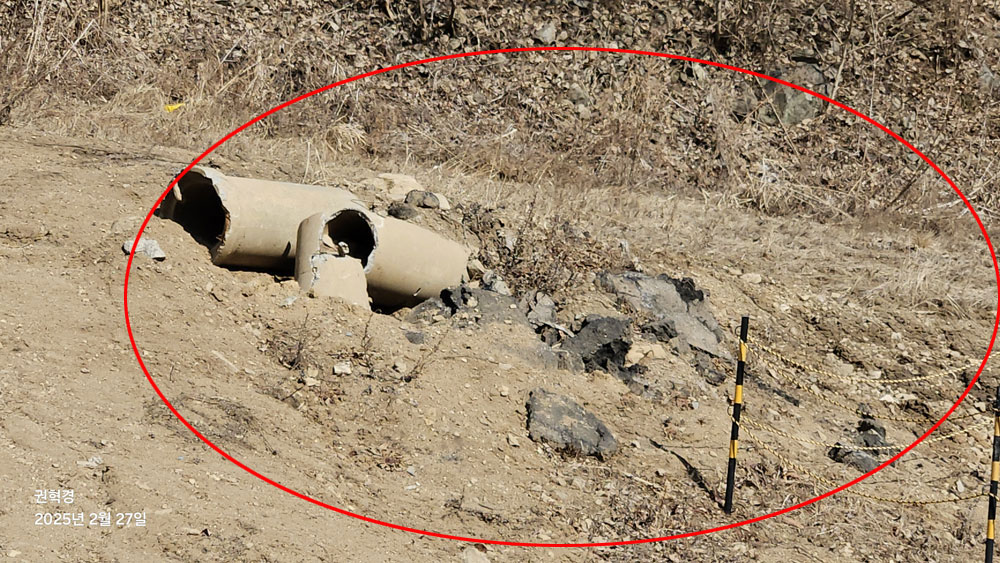 ▲(사진 원안) 또한 도로에서 언뜻 봐도 쉽게 발견 가능한, 그것도 폐콘크리트 임시야적장 인근 토양이라 현장 직원들의 눈에도 쉽게 띠일 텐데도 폐흉관과 폐아스콘이 흉물스럽게 방치돼 있는 점에서 보면 폐기물 관리 의식 수준이 어느 정도 인지 가늠해 볼 수 있다.